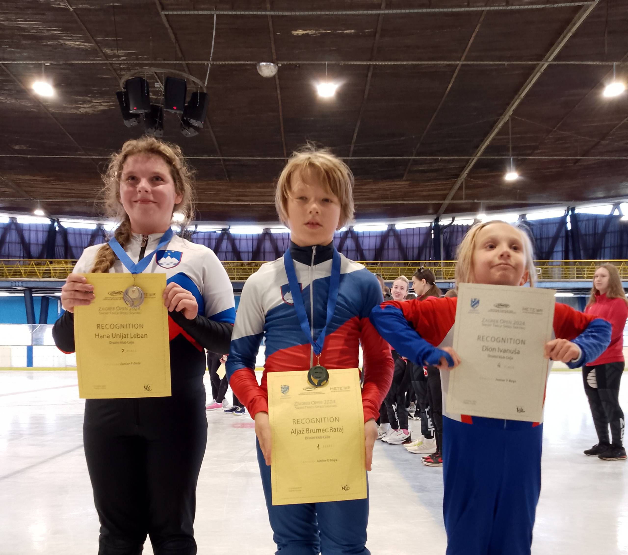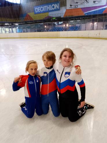 Za nadobudne drsalce, ki se med seboj zelo razumejo in uživajo na ledu, je bilo to prvo tekmovanje izven domače Ledene dvorane. Tekmovali so v razdaljah na 333 m, 500 m in 777 m. Sreča v očeh se je še posebej iskrila za prvi medalji, ki sta jo pridrsala Aljaž in Hana. Aljaž je v svoji kategoriji Junior E Boys osvojil 1. mesto, Hana je osvojila 2.mesto v kategoriji Junior E Girls, Dion je v kategoriji Junior F Boys pridrsal 4. mesto.