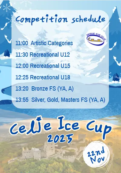 Drsalni klub Celje z veseljem vabi na Celje Ice Cup 2025, mednarodno interklubsko tekmovanje v umetnostnem drsanju za rekreativne, mlade odrasle in odrasle drsalce. Tekmovanje bo potekalo 22. novembra 2025 na ledu Mestnega parka v Celju.